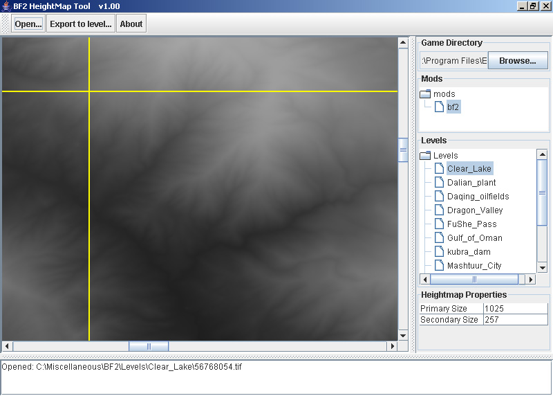 Battlefield 2 HeightMap Tool (BF2HMT), allows for rapid import of heightmaps into Battlefield 2. Real-world elevation data (from a site such as USGS), or data from another source (such as Terragen) can be imported, and automatically converted into a BF2 heightmap. Both Primary and Secondary maps are supported. When used in combination with an automatic texturing tool such as BF2Ecomap, a strikingly realistic BF2 level can be created in just minutes.